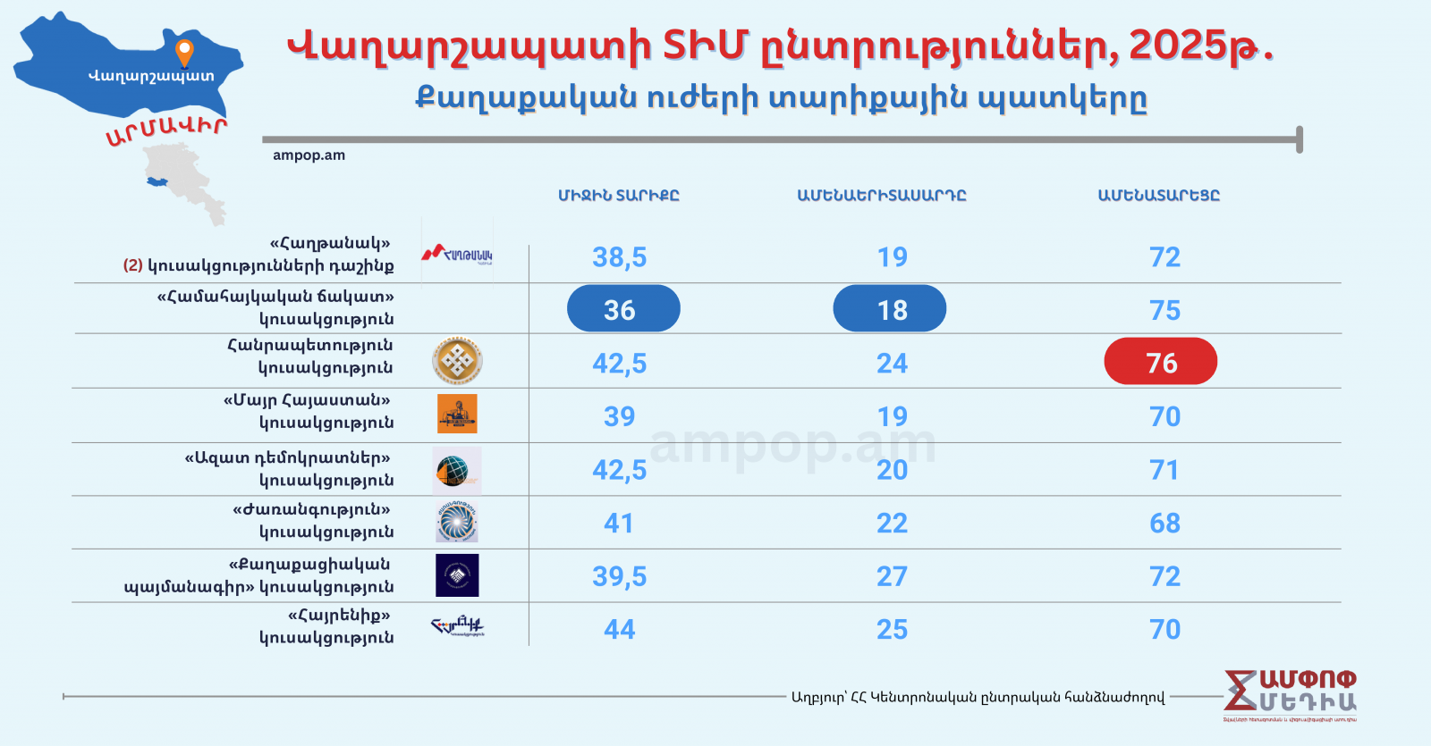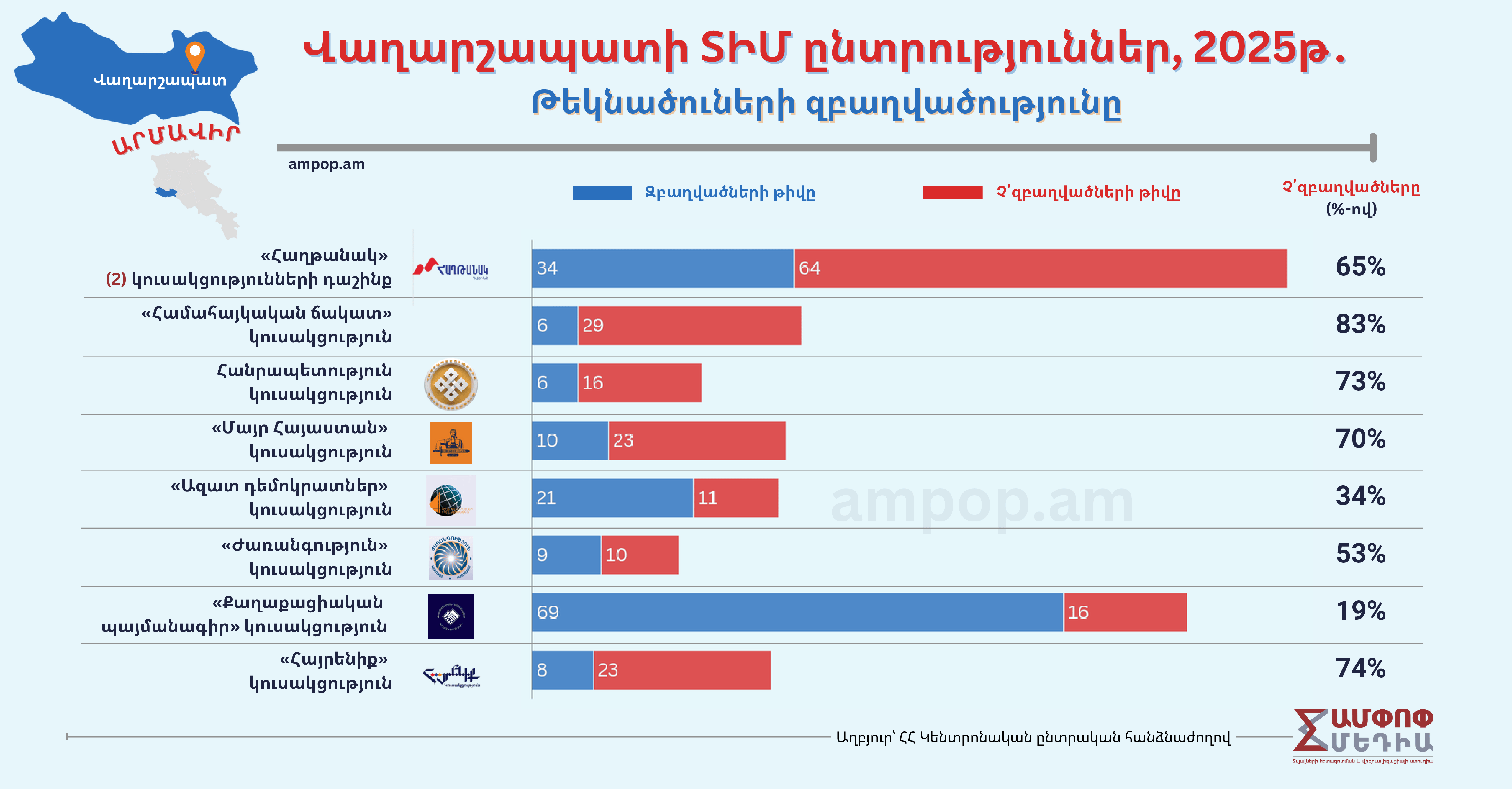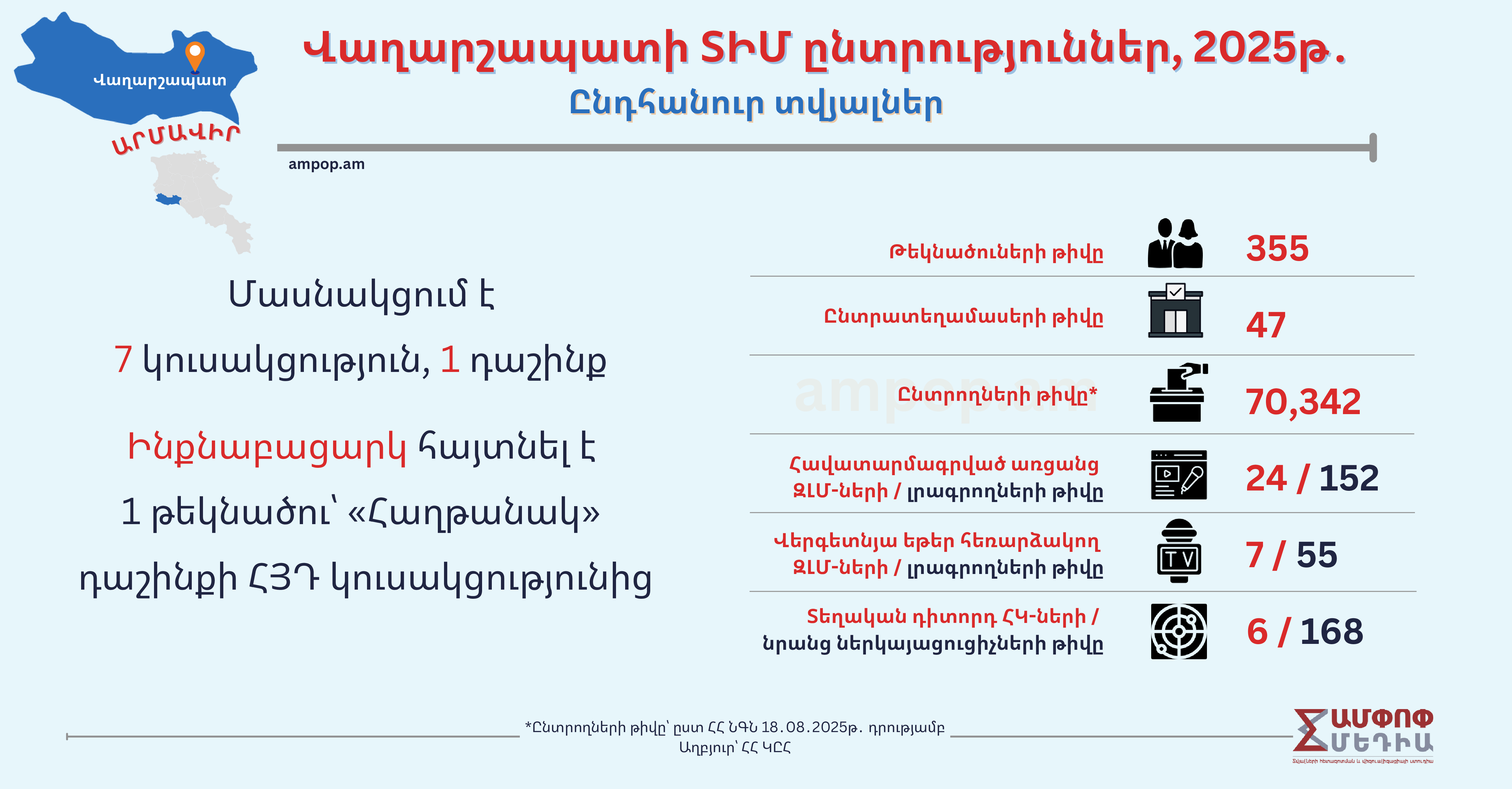 «Ամփոփ Մեդիան» մշակել և պատկերների է վերածել Վաղարշապատի ընտրություններին վերաբերող նախընտրական տվյալները։