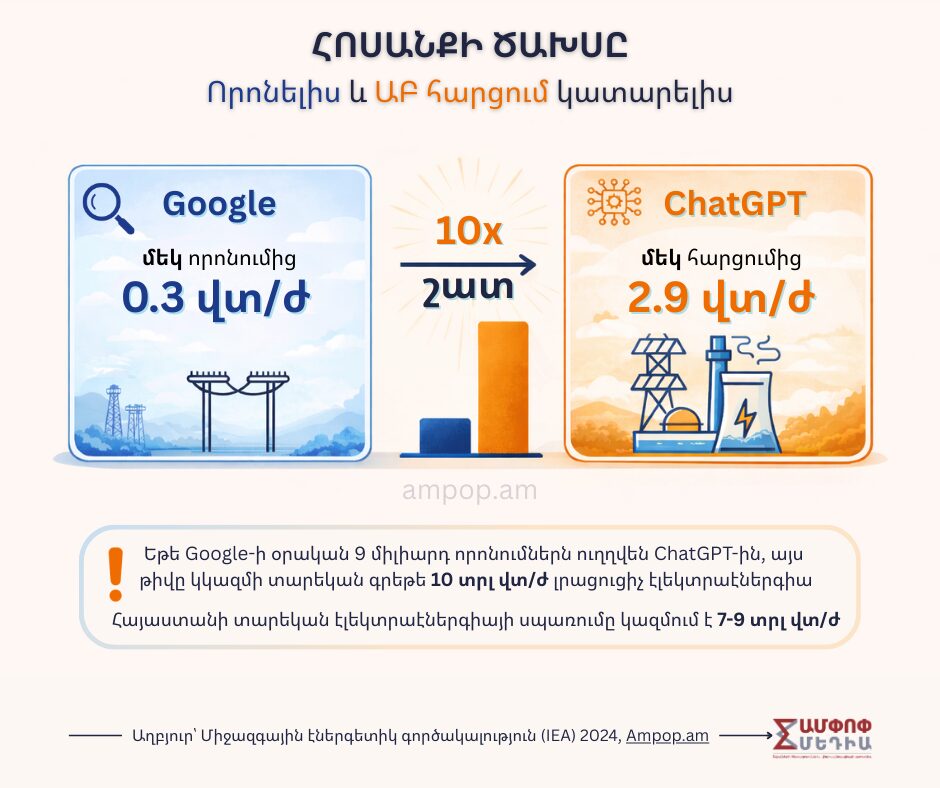 Հայաստանում մենք դեռ չենք կառուցում գիգավատ հզորությամբ տվյալների կենտրոններ, բայց ԱԲ-ն արդեն օգտագործում ենք աշխատանքում, կրթության և բիզնեսի ոլորտներում, պետական համակարգերում։